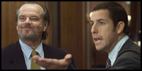 With the unlikely pairing of Adam Sandler and Jack Nicholson, "Anger Management" had what it took to create genuine comic hilarity out of their differing personalities, but chooses not to take advantage of it. As the put-upon David, Adam Sandler playswellone of his most restrained characters to date, but there is not a hint of complexity in him. As for Dr. Buddy Rydell, who in one of the film's brighter scenes forces himself into David's bed only to forwardly confess that he likes "to sleep in the nude," Jack Nicholson slums through the proceedings, given little more to do than exaggerate his famous eyebrow-raising mannerism.