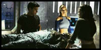 Perhaps realizing that making "Jason X" into a frightening horror film would be too challenging a task, director James Isaac has opted to not even try to make the proceedings scary. In fact, there isn't even a single successful "jump-out-of-your-seat" moment to be had. Because the movie is little more than a collection of scenes of people being slaughtered (in, admittedly, some of the more ingenious ways the series has seen), Isaac has single-handedly targeted making "Jason X" funny, with one-liners and would-be sly dialogue exchanges coming every couple minutes. Aside from one clever moment in which a character sarcastically responds directly to Jason after being stabbed through the rib cage, none of the comedy works, either.